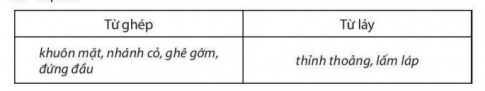 6. Kẻ bảng vào vở (theo mẫu) và điền các từ in đậm trong đoạn trích sau vào ở phù hợp: