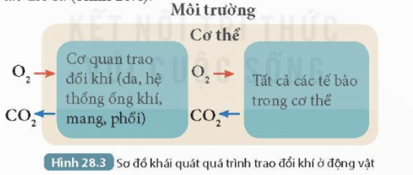 Khí O2 được đi vào cơ thể nhờ cơ quan trao đổi khí, sau đó được đưa đến tất cả các tế bào trong cơ thể. Khí CO2 được thải ra từ các tế bào đi qua cơ quan trao đổi khí và đi ra môi trường bên ngoài.