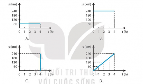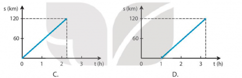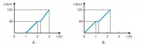 10.3. Lúc 1 h sáng, một đoàn tàu hoả chạy từ ga A đến ga B với tốc độ 60 km/h, đến ga B lúc 2 h và dừng ở ga B 15 min. Sau đó, đoàn tàu tiếp tục chạy với tốc độ cũ thì đến ga C lúc 3 h 15 min. Hình vẽ nào sau đây biểu diễn đúng đồ thị quãng đường - thời gian của đoàn tàu nói trên?