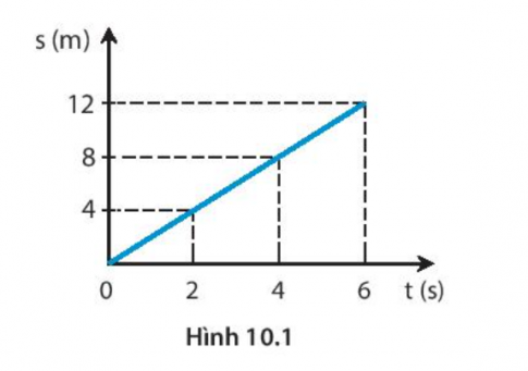 10.6. Hình 10.4 là đồ thị quãng đường - thời gian của một chuyển động. Hãy dựa vào đồ thị, viết một để bài tập có 3 câu hỏi rồi giải.