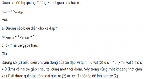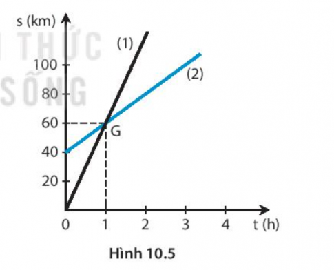 10.7. Hình 10.5 là đồ thị quãng đường - thời gian của một người đổi xe đạp và một người đi mô tô. Biết mô tô chuyển động nhanh hơn xe đạp.