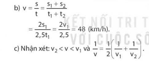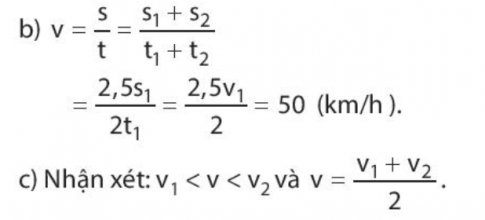 c) Hãy so sánh các giá trị v, v1, v2 và tìm biểu thức tổng quát về mối liên hệ giữa v, v1, v2