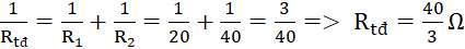 R1 và R2 | 0,75 | 0,75 |