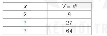 Kí hiệu V là thể tích của hình lập phương với cạnh x. Hãy thay dấu “? “ trong bảng sau bằng các giá trị thích hợp.