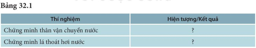 BÀI 32. THỰC HÀNH: THÂN VẬN CHUYỂN NƯỚC VÀ LÁ THOÁT HƠI NƯỚC TRANG