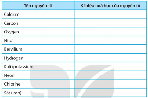 3.15. Cho các nguyên tố hoá họcsau:carbon,hydrogen, oxygen, nitơ,phosphorus, chlorine, lưu huỳnh, calcium, kali, sắt, iodine và argon.