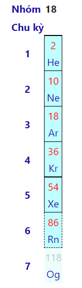 B. Các nguyên tố khí hiếm nằm ở nhóm VIIIA.