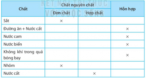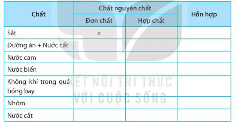 5.11. Đánh dấu (x) vào ô thích hợp để hoàn thiện bảng sau về sự phân loại một số chất.