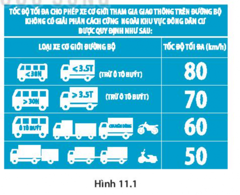 => Quan sát hình 11.1 ta thấy hình ảnh xe buýt có ở hình với tốc độ tối đa là 60 km/h. Vậy xe buýt được đi trong khoảng 50 km/h < v < 60 km/h là tuân thủ quy định về tốc độ tối đa của Hình 11.1.