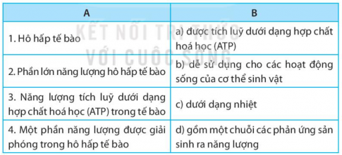 Hô hấp tế bào là quá trình phân giải các phân tử chất ...(1)..., với sự tham gia của ...(2).... tạo thành khí ...(3)... và nước, đồng thời sinh ra năng lượng dễ sử dụng cung cấp cho các ...(4)... của cơ thể.