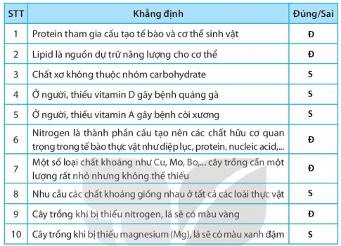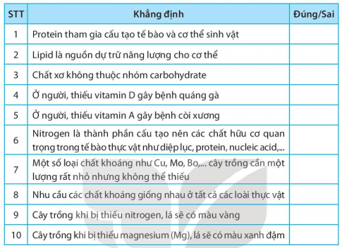 Giải SBT bài 29: Vai trò của nước và chất dinh dưỡng đối với sinh vật