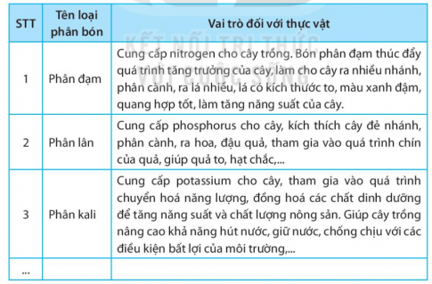 29.8. Kể tên một số loại phân bón mà em biết và nêu vai trò của chúng đối với thực vật.