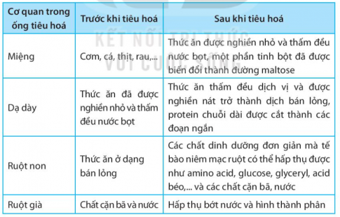 31.8. Dựa vào những hiểu biết của em về sự biến đổi thức ăn trong ống tiêu hoá của người, hãy hoàn thành bảng theo mẫu sau và rút ra nhận xét về sự phổi hợp hoạt động của các cơ quan trong ống tiêu hoá.