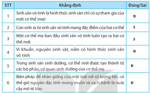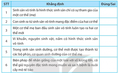 Giải SBT bài 39: Sinh sản vô tính ở sinh vật