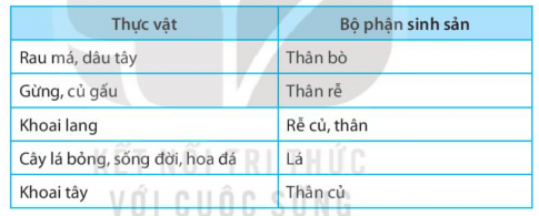 39.2. Em hãy kể tên một số loài thực vật sinh sản sinh dưỡng trong tự nhiên. Cho biết chúng sinh sản bằng bộ phận nào của cơ thể.