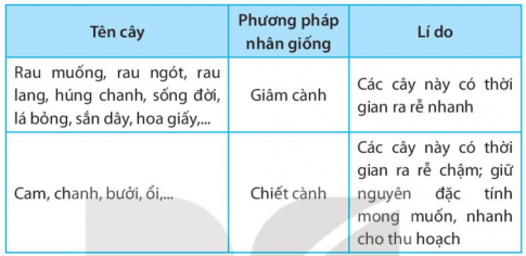 39.8. Hãy kể tên các loài cây trồng ở địa phương em được trồng và nhân giống bằng các phương pháp nhân giống vô tính. Giải thích lí do lựa chọn cá phương pháp khác nhau cho từng nhóm cây.
