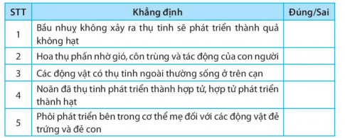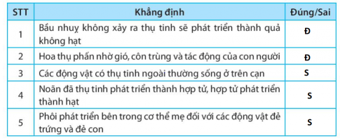 Giải SBT bài 40: Sinh sản hữu tính ở sinh vật