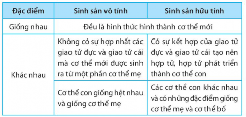 40.7. So sánh hình thức sinh sản vô tính và sinh sản hữu tính ở sinh vật theo mẫu bảng sau: