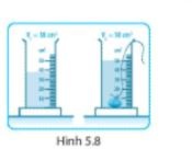 b) Hình 5.9 mô tả cách đo thể tích của một vật rắn không thấm nước bằng bình tràn kết hợp với bình chia độ. Thể tích của vật đó bằng