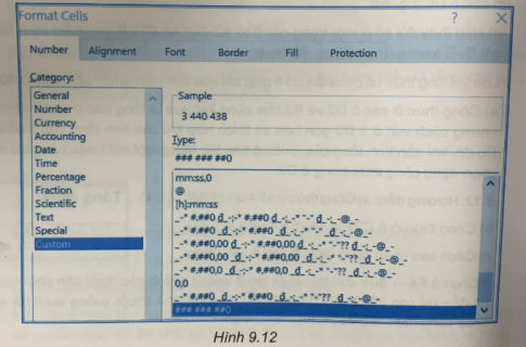 Theo em bạn Minh cần chọn tiếp mục nào ở hộp Category (Hình 9.9) để định dạng ô dữ liệu ngày tháng?