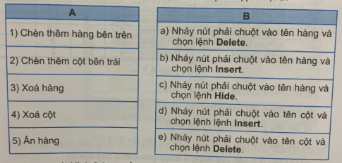 9.6. Nối mỗi chức năng ở cột A với một thao tác phù hợp ở cột B
