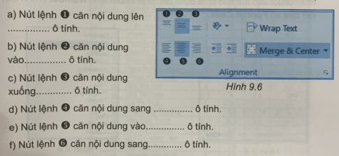9.7. Quan sát Hình 9.6 và điền các từ/cụm từ sau: giữa (theo chiều ngang), trái, giữa (theo chiều dọc), đỉnh, phải, đáy vào chỗ trống (...) cho phù hợp: