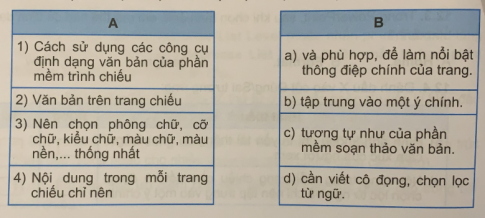 b) Nội dung trong mỗi trang chiều cần viết cô đọng, chọn lọc từ ngữ và chỉ nên tập trung vào một ý chính