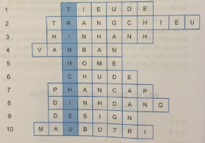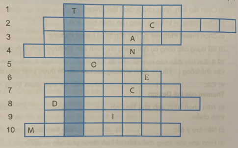 12.11. GIẢI Ô CHỮ: Hãy tìm từ khoá trong cột màu xanh của ô chữ dưới đây. Biết rằng mỗi từ hoặc cụm từ trong mỗi hàng là đáp án cho mỗi câu hỏi tương ứng sau: (Áp dụng với phần mềm PowerPoint).