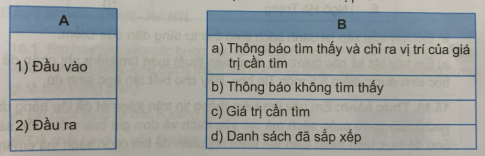 15.7. Hãy ghép mỗi nội dung ở cột A với những nội dung phù hợp ở cột B để xác định đầu vào và đầu ra của thuật toán tìm kiếm nhị phân.