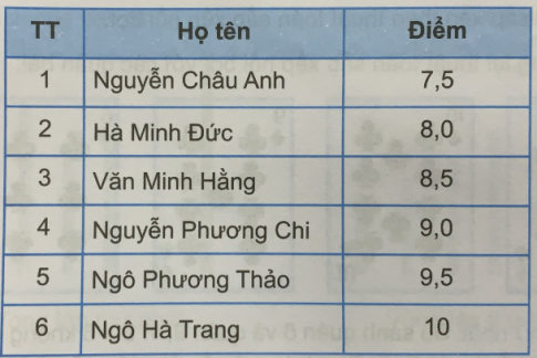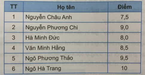 15.9. Cho bảng điểm môn Tin học của học sinh tổ một như sau: