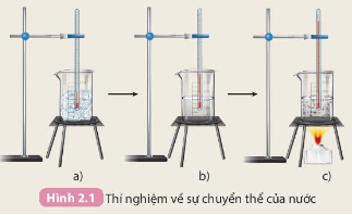 Chuẩn bị: nước đá viên; cốc thuỷ tỉnh 250 mL, nhiệt kế, đèn cồn, kiếng sắt.
