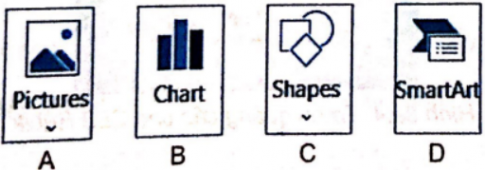 8a.6. Em hãy chọn phương án đúng: Để chèn một hình đồ hoạ vào văn bản em nhảy chuột vào thẻ Insert rồi chọn:
