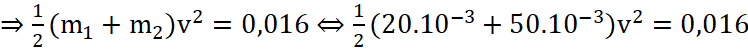 b) Cho độ cao ban đầu của quả nặng so với sàn xe là 8cm, khối lượng quả nặng là m1 = 20 g, khối lượng của xe là m2 = 50 g. Tính tốc độ của xe ngay khi quả nặng chạm sàn xe, nếu coi toàn bộ thế năng của quả nặng chuyển hóa thành động năng.