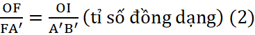 b) Vận dụng kiến thức hình học tính chiều cao của ảnh (h’) và khoảng cách từ ảnh tới quang tâm (d’).