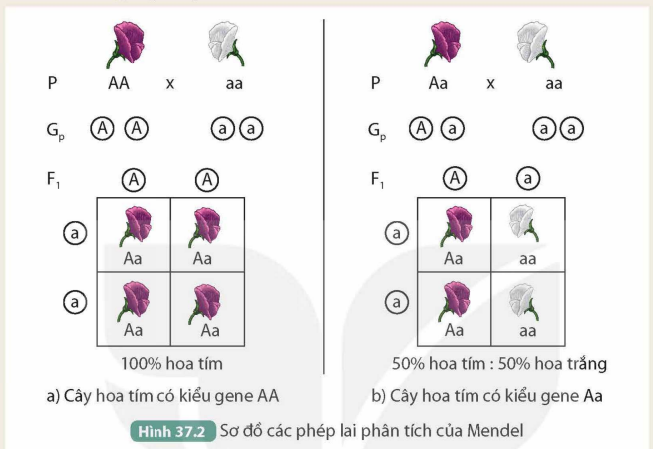 Khởi động: Trong thí nghiệm của Mendel, tại sao khi cho các cây đậu hà lan có hoa tím giao phấn với nhau thì thu được đời con có cây hoa tím và cây hoa trắng nhưng không thu được cây có hoa màu tím nhạt?