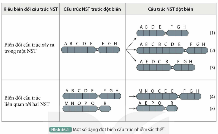 Bảng 46.1. Sự thay đổi về cấu trúc của các nhiễm sắc thể sau khi đột biến