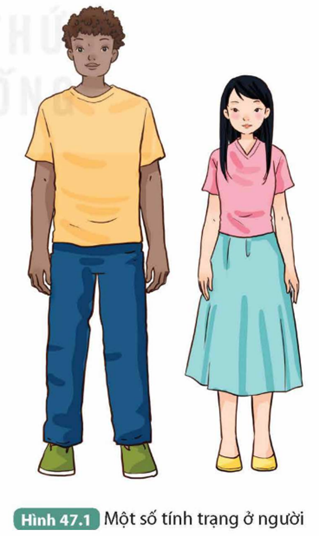 Hoạt động 2: Ngoài những tính trạng quan sát được ở Hình 47.1, nêu thêm một số ví dụ về tính trạng ở người.