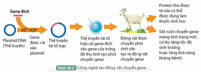 Hoạt động: Quan sát Hình 48.2, mô tả quá trình tạo động vật chuyển gene.
