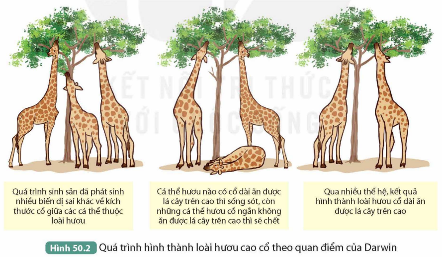 2. Để giải thích sự hình thành loài hươu cao cổ, quan điểm của Darwin khác với quan điểm của Lamarck như thế nào?