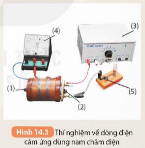 Chuẩn bị: Cuộn dây dẫn (1); nam châm điện (2); nguồn điện (3); điện kế (4); công tắc (5) và các dây nối.