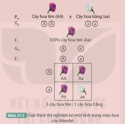 Khởi động: Trong thí nghiệm của Mendel, tại sao khi cho các cây đậu hà lan có hoa tím giao phấn với nhau thì thu được đời con có cây hoa tím và cây hoa trắng nhưng không thu được cây có hoa màu tím nhạt?
