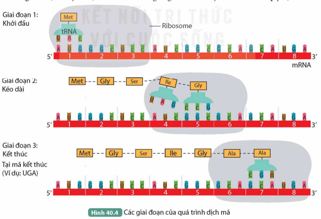 - Giai đoạn 3: Kết thúc. Khi ribosome gặp codon kết thúc thì quá trình dịch mã hoàn tất.