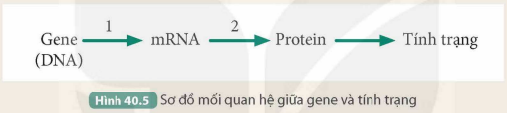 2. Mối quan hệ: tính trạng được tạo ra thông qua sự tương tác giữa các phân tử mRNA, protein và chịu tác động của môi trường.