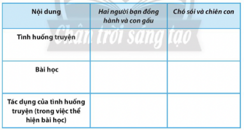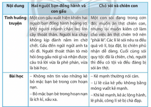 huống trong việc thể hiện bài học trong các truyện Hai người bạn đồng hành và con gấu, Chó sói và chiến con