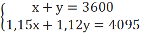 Năm ngoái, hai đơn vị sản suất nông nghiệp thu hoạch được 3 600 tấn thóc. Năm nay, hai đơn vị thu hoạch được 4 095 tấn thóc. Hỏi năm nay, mỗi đơn vị thu hoặc được bao nhiêu tấn tóc, biết bằng năm nay, đơn vị thứ nhất làm vượt mức 15%, đơn vị thứ hai làm vượt mức 12% so với năm ngoái?
