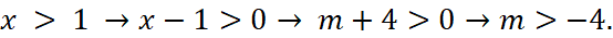 Phương trình x – 1 = m + 4 có nghiệm lớn hơn 1 với