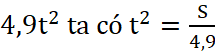 a) Viết công thức tính thời gian t(giây) cần thiết để vật rơi được vào khoảng S (mét).