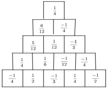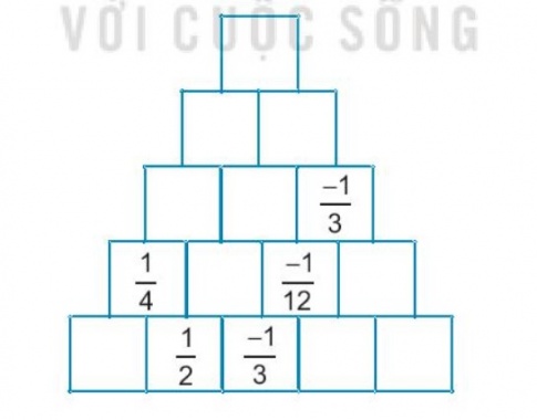1.10. Điền các số hữu tỉ thích hợp vào ô trống trong hình tháp dưới đây, biết rằng mỗi ô ở hàng trên bằng tổng của hai số trong hai ô kể nó ở hàng dưới.