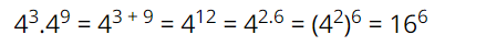 2. Kết quả của phép nhân \(4^{3}\). \(4^{9}\)
