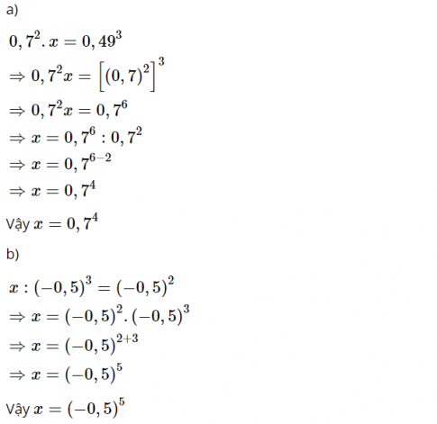 b) X : \((-0.5)^{3}\) = \(\)(-0.5)^{2}\(\)